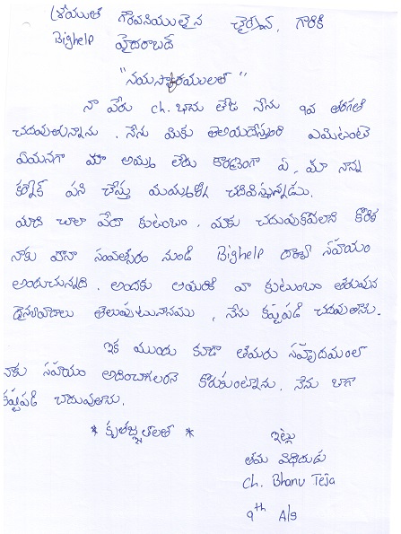Bighelp thanks VMware Foundation for kindly sponsoring the education of Bhanu Teja Chintamalla.