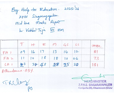 | Bighelp thanks Kishore Marti for kindly sponsoring the education of Vikhil Teja Lakavath. |
