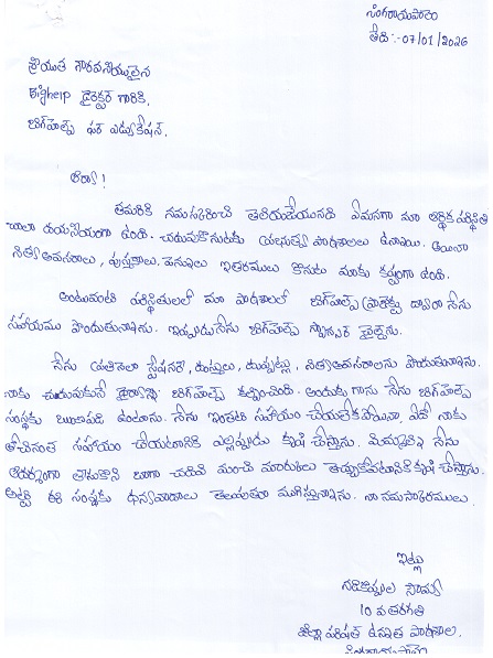Bighelp thanks Ramakant Moka for kindly sponsoring the education of Sowmya Nadikoppula.