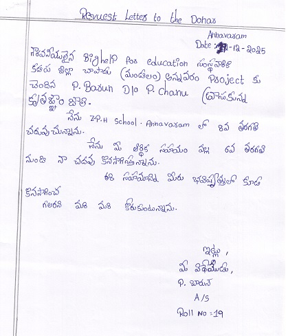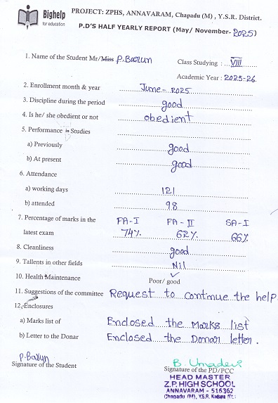 Bighelp thanks Ravindra Babu Koneru for kindly sponsoring the education of Barun Papuleti.