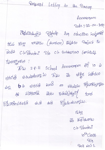 Bighelp thanks Durgaprasad & Vasantha Peddireddy for kindly sponsoring the education of Bhudevi Chinnakatigalla.