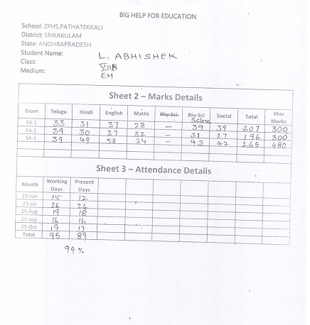 Bighelp thanks Vidyavathi Boddepalli for kindly sponsoring the education of Abhishek Limmada.