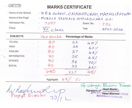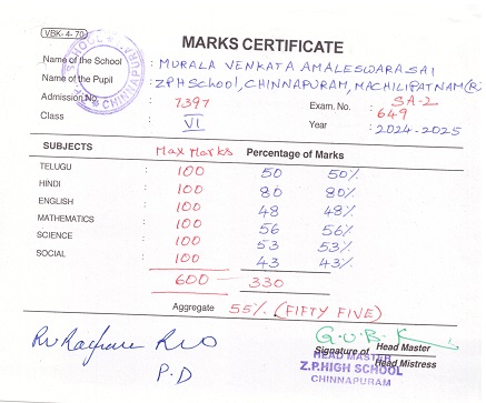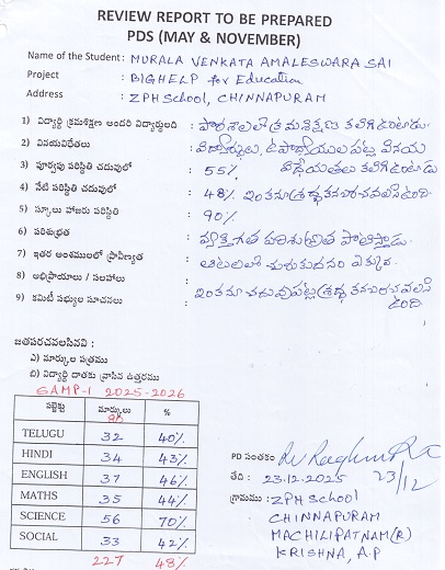 Bighelp thanks Ravisankar Videla for kindly sponsoring the education of Venkata Amaleswara Sai Murala.