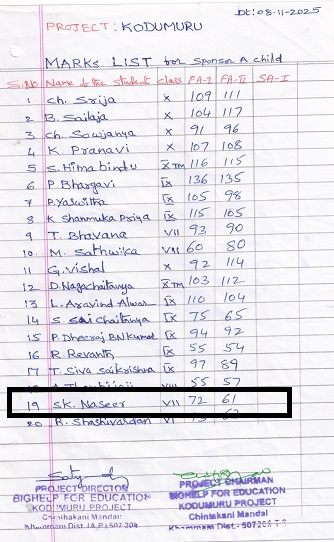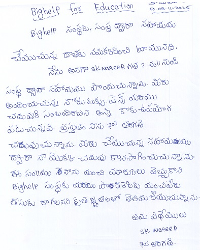 Bighelp thanks Bighelp North Carolina Chapter for kindly sponsoring the education of Naseer Shaik.