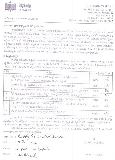 Bighelp thanks Venugopal & Prabha Polasani for kindly sponsoring the education of Sri Santhosh Kumar Reddy.