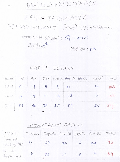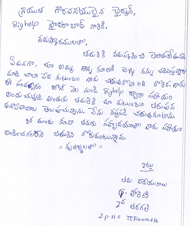 Bighelp thanks Ganesh Chintalapati for kindly sponsoring the education of Harini Gundeboina.