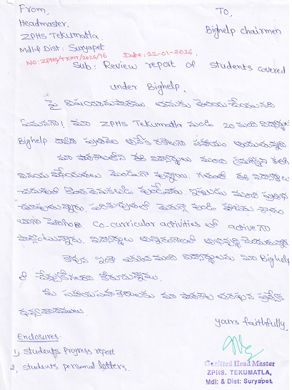 Zilla Parishad High School Tekumatla Suryapet Mandal Suryapet Dist. Telangana, India 508213 |
