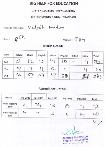 Bighelp thanks Priyanka Pradhan for kindly sponsoring the education of Madan Malavath.