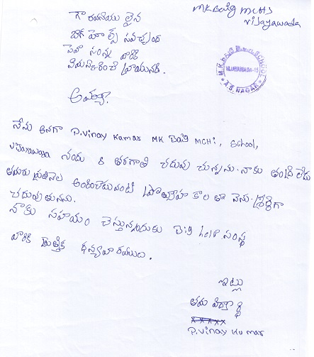 Bighelp thanks Microsoft Match - Pavan Kumar Moturu for kindly sponsoring the education of Vinay Kumar Pedapati.