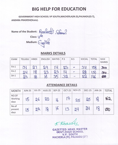 Bighelp thanks D0931 - Anonymous donor for kindly sponsoring the education of Bhavana Ramisetty.