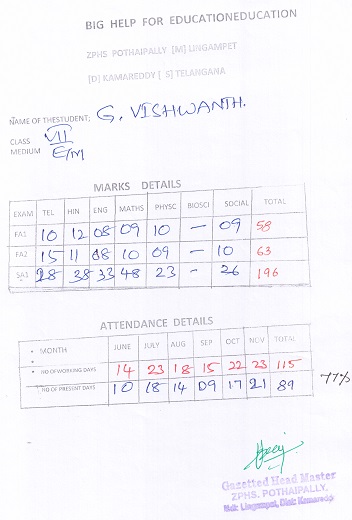 Zilla Parishad High School Pothaipally Lingampet Mandal Kamareddy Dist. T.S, India 503124 |
