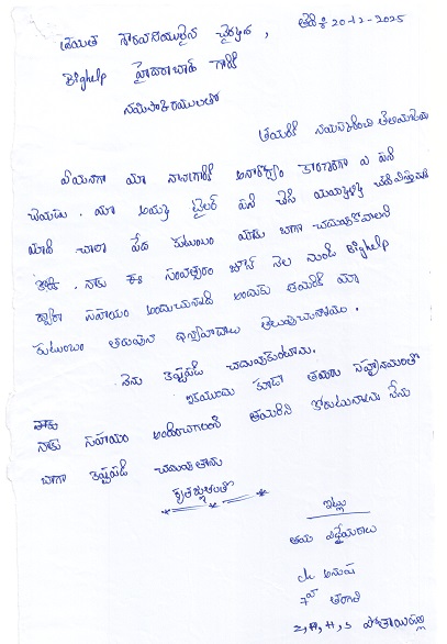 C/O Alluri Chituri H.No ; 5-92 Pothaipally Keshaipet Mandal Kamareddy Dist. T.S, India 503124 |