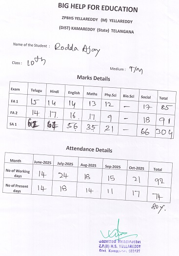 Zilla Parishad High School Yellareddy Yellareddy Mandal Kamareddy Dist. T.S, India 503122 |