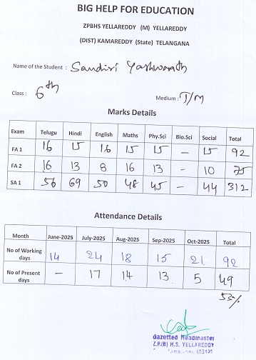 Zilla Parishad High School Yellareddy Yellareddy Mandal Kamareddy Dist. T.S, India 503122 |