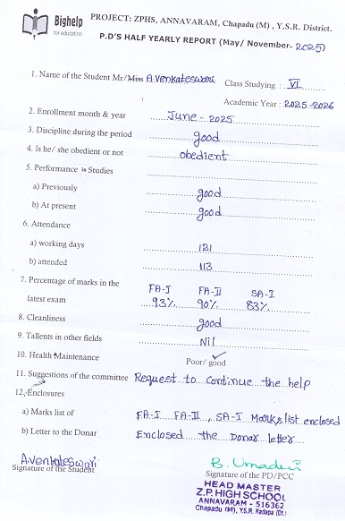 Bighelp thanks Jyostna Mura for kindly sponsoring the education of Venkateswari Alluri.