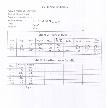Bighelp thanks Venkatakamakshi Jahnavi Giddaluri for kindly sponsoring the education of Manjula Gadi.