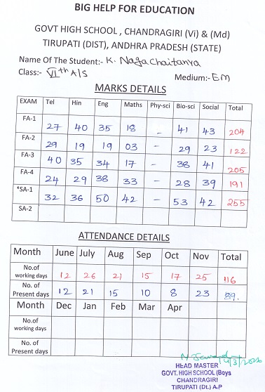 Bighelp thanks Sitharamayya Solasa for kindly sponsoring the education of Naga Chaitanya Kampalli.