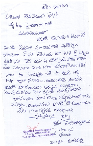 C/O T.Satyavathi Thallapu Reddy Kurnavalli Thallada Mandal Khammam Dist. T.S, India 507167 |