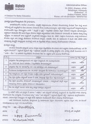 C/O Venkatamma Malladi Kalakodima Thallada Mandal Khammam Dist. T.S, India 507167 |