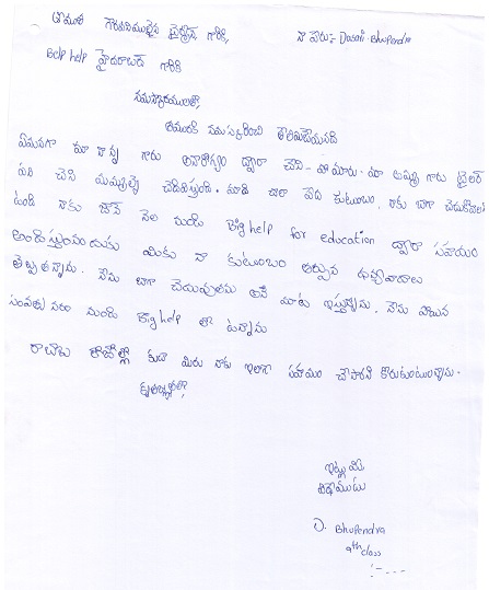 Bighelp thanks Radhika Vallabhaneni for kindly sponsoring the education of Bhupendra Dasari.