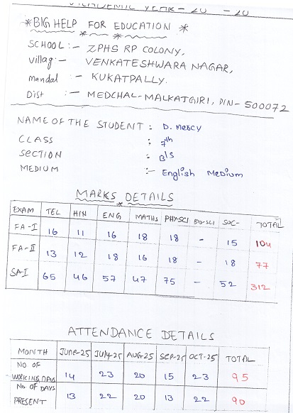 Zilla Parishad High School R.P Colony Venkateshwar Nagar Kukatpally Mandal Medchal Dist. T.S, India 500072 |