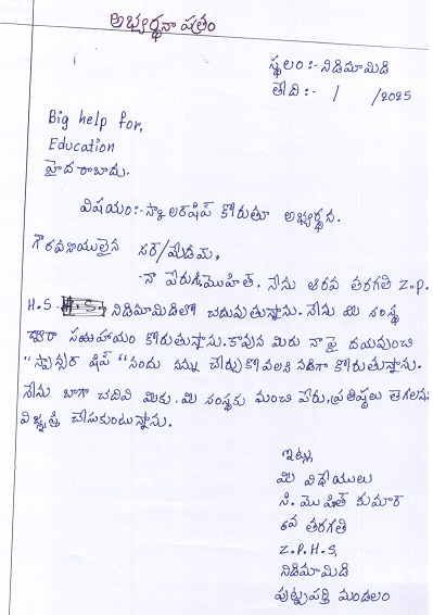 Bighelp thanks Navin Ramesh for kindly sponsoring the education of Mohith Kumar Chakala.