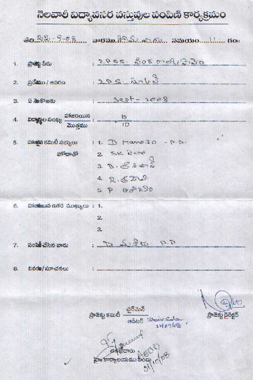 | Sponsor A Child - Singarayapalem, Year 2007- 2008 |