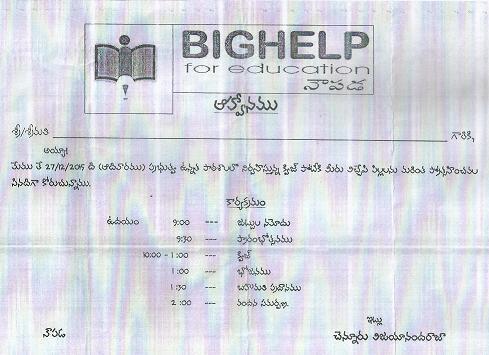Bighelp has conducted a quiz program in Zilla Parishad High School Naupada, Santhabommali Mandal, Srikakulam district at Mandal level on 27th December 2015 to familiarize the students and foster a competitive spirit among students. Total 8 schools participated in this quiz program. From each school 5 students have participated. Quiz program included subject based questions as well as general knowledge.