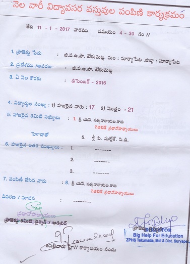 | Provided NMMS Material to Z.P. H. School-Tekumatla |