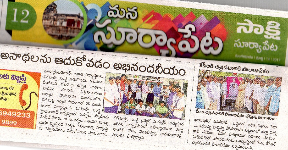 | 04-Nov-2016 News Published in ManaSuryapet on 04-11-2016 | | 14-Mar-2017 News Published in Sakshi on 14-03-2017 |