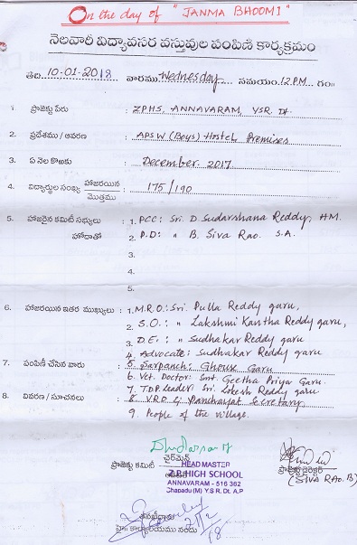 | Provided NMMS Material to Z.P. H. School-Annavaram |