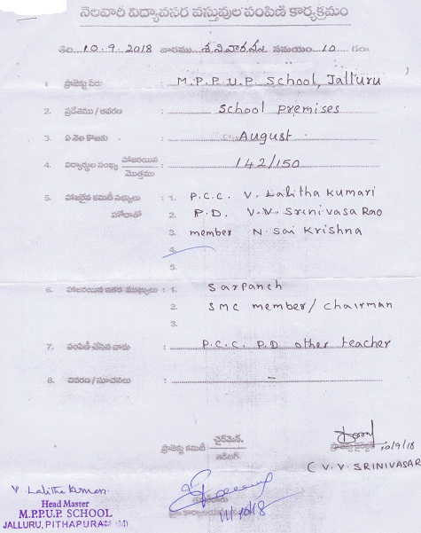Sponsor A Child - Jalluru, Year 2018-19 |
