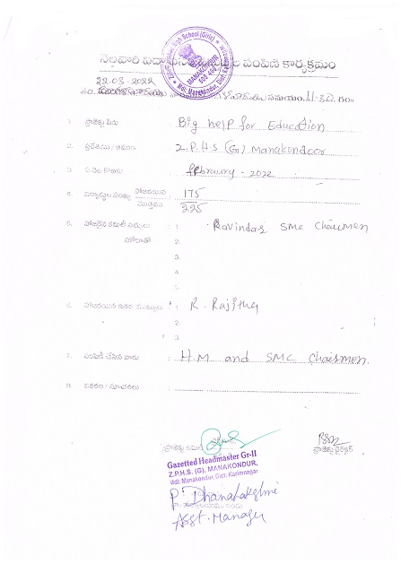 | Sponsor A Child - Manakondur, Year 2022 - 23 |