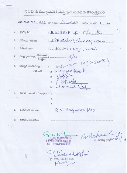 | Donated Sports material - Z.P.H. School, Chinnapuram 2026 |