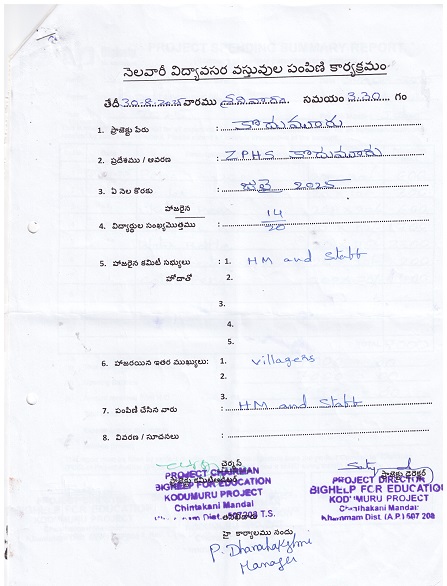 Provided NMMS Material to Z.P. H. School-Kodumuru |