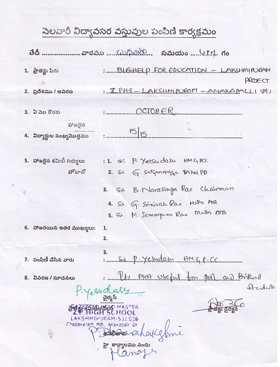 | Sponsor A Child - Laxmipuram, Year 2015 -16 |