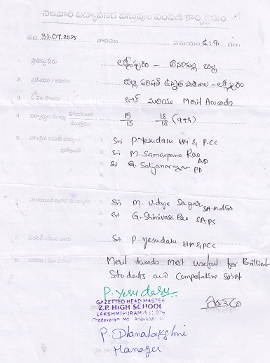 Provided NMMS Material to Z.P.H. School - Laxmipuram 2022-23 |