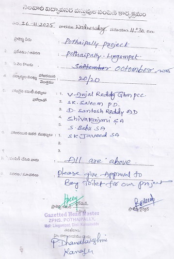 | Request for Construction of toilets at Z.P.H. School - Pothaipally |