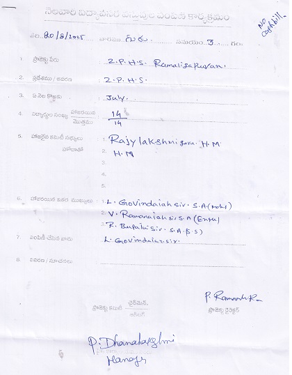 | Provided NMMS Material to Z.P.H. School -Ramalingapuram |