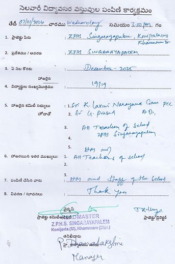 | Provided NMMS Material to Z.P. H. School - Singarayapalem 2022-23 |
