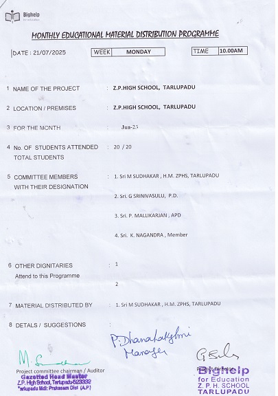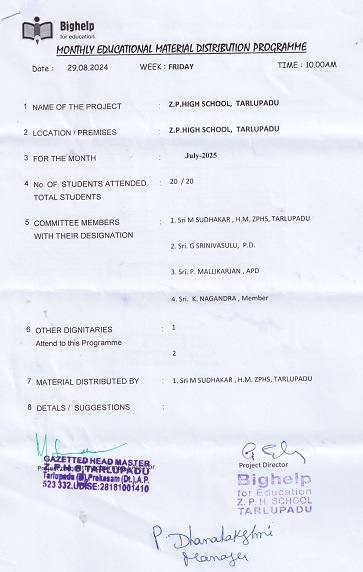 Provided NMMS Material to Z.P.H. School - Tarlupadu |