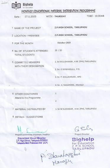 | Provided NMMS Material to Z.P.H. School - Tarlupadu |