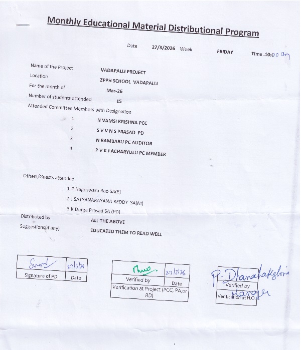 | Provided NMMS Material to Z.P.H. School-Vadapalli |