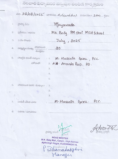 Provided NMMS Material to MK. Baig M.C.H. School-Vijayawada 2022-23 |