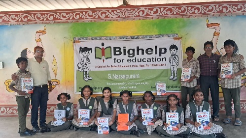 Bighelp For Education presented NATIONAL MEANS CUM- MERIT SCHOLARSHIP study material to 18 students who attend the NMMS exam in Z.P.H. School, S. Narsapuram, Anakapalli district, AP.