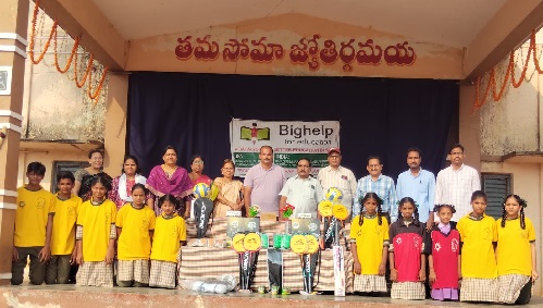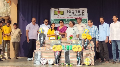 | Bighelp For Education donated Volley Balls, Cones, tennikoit Nets, Volley Ball Nets, Tennikoit Rings, Throw Balls, Kho-Kho Poles and Yoga Mats to Zilla Parishad High School, Undrajavaram, West Godavari district, Andhra Pradesh.to support the organization of various sports and games. This initiative aims to promote physical fitness, teamwork, and sportsmanship among the students. |