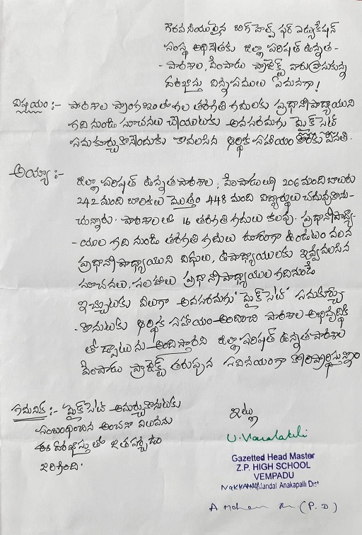 Request for Sound System to Z.P.H. School - Vempadu |