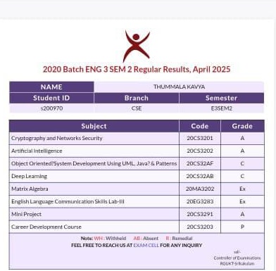 | The sponsorship for Kavya Thummala has been continued by Ekambareswara Rao Atluri |
