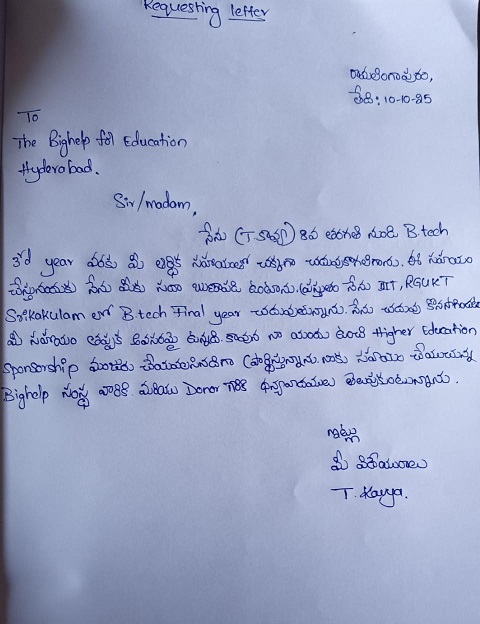 | Bighelp thanks Ekambareswara Rao Atluri for kindly sponsoring the education of Kavya Thummala. |