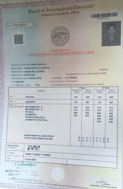| Bighelp thanks Gayatridevi and Ravi Ika for kindly sponsoring the education of Sanjana Parimi. |